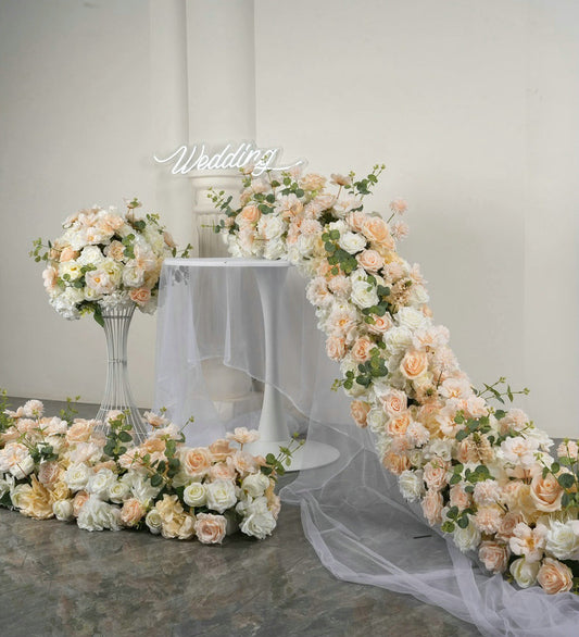 Peach, Champagne, Ivory Flower Runner, Wedding Flower Centerpiece, Bridal Shower Backdrop Decor