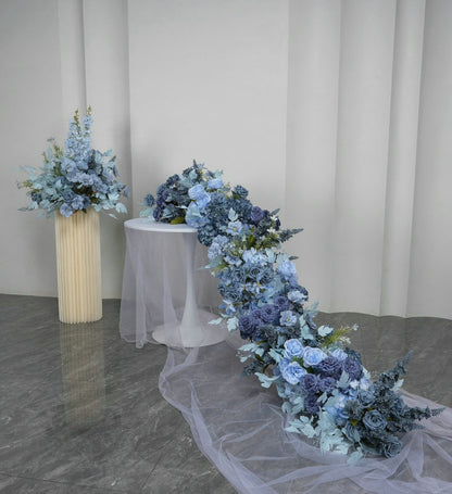 Artificial Dusty Blue Flower Runner, Wedding Flower Centerpiece, Bridal Shower Backdrop Decor