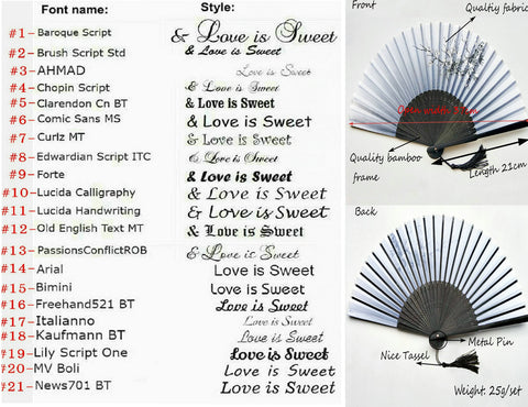 Personalized wedding fans with Exquisite Gift box, Personalized tags and paper flowers.