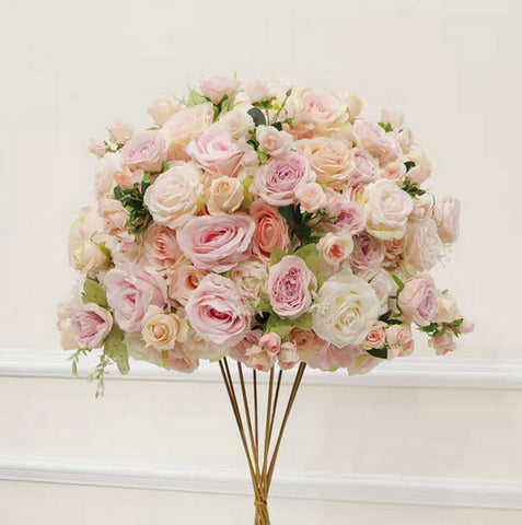 Ice Cream White Flower Ball,Light Pink Wedding Centrepiece,Rose Flower Table Runner,Wedding Table Centrepiece