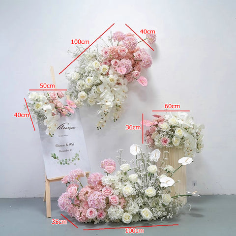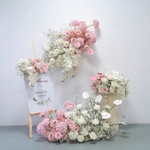 Ivory Baby Pink Wall Hanging Flowers,Wedding Centerpiece,Flower Row Table Runner Road Lead Flowers