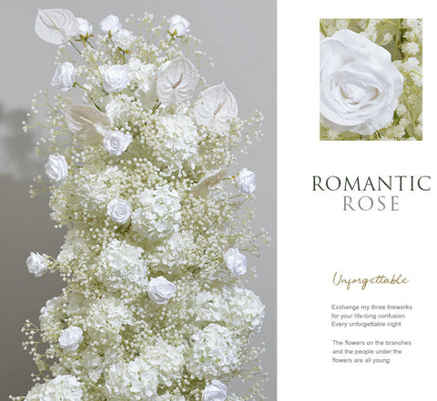 Ivory Rose, Hydrangea, Babysbreath Flowers Garland, Wedding Party Arch Flower, Photo Booth Backdrop Decor