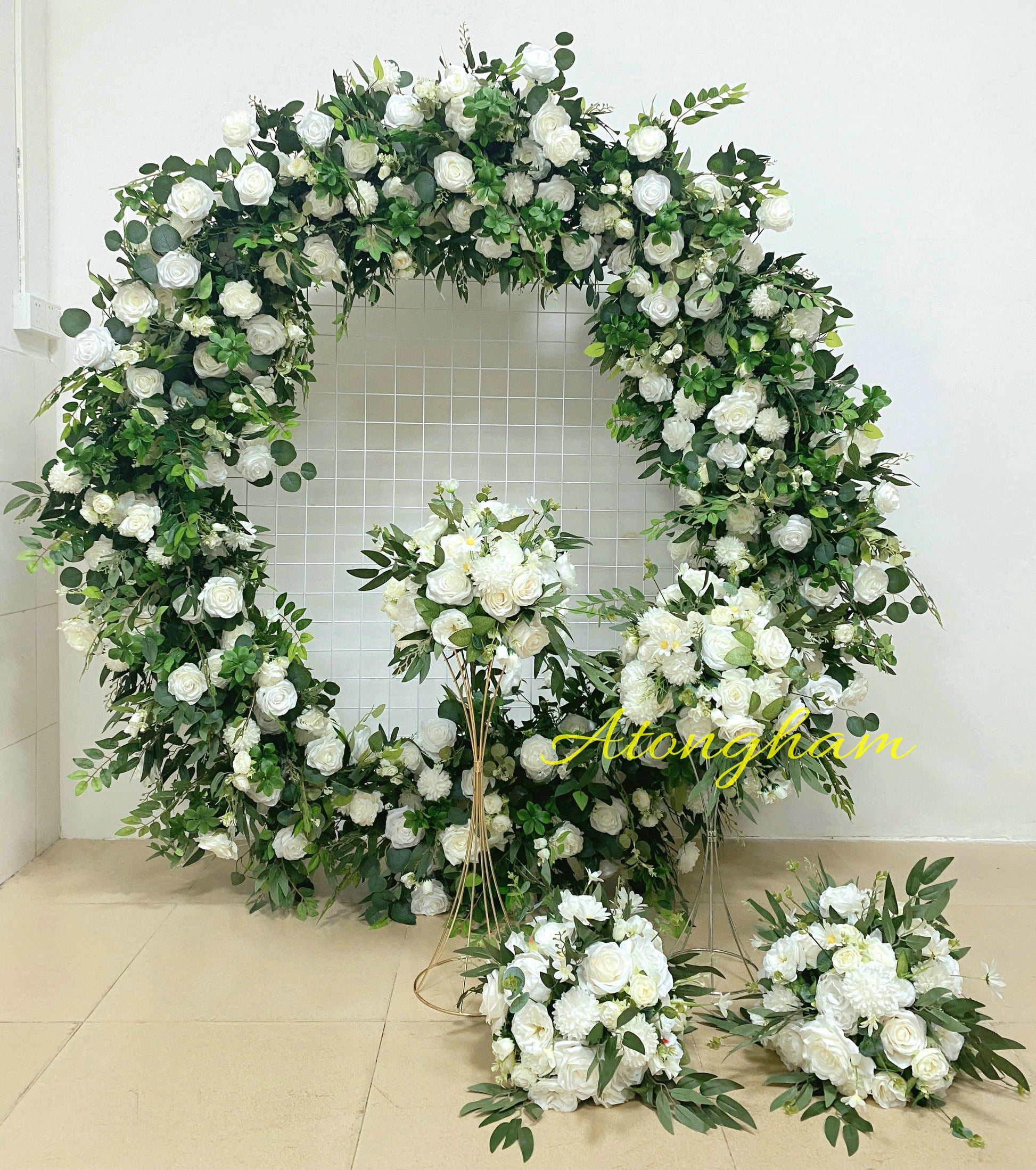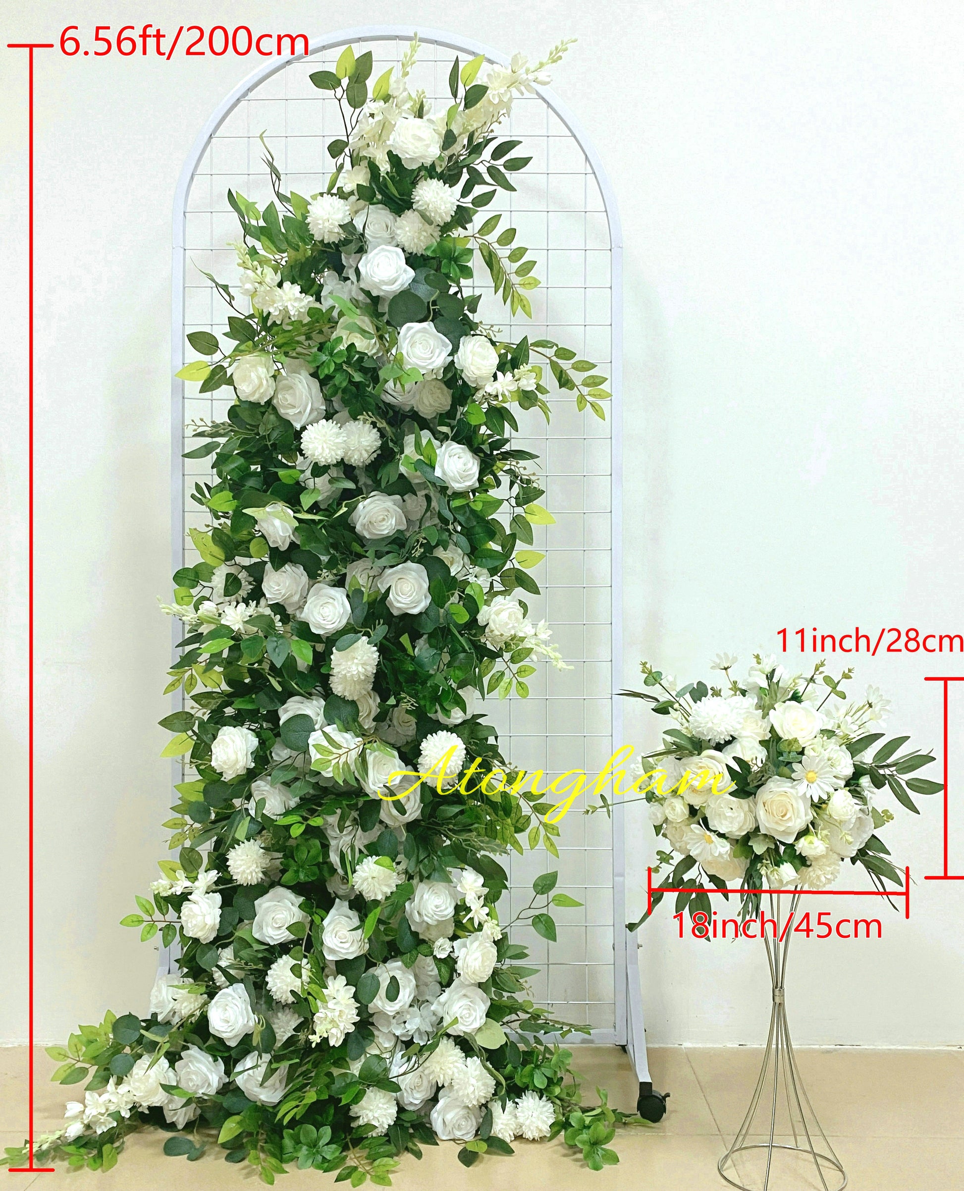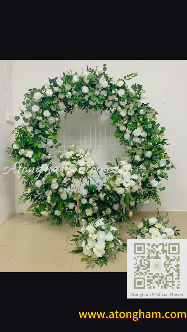 Round Green Leaves White Rose Arch Flower Wedding Engagement Ceremony Table Centerpiece