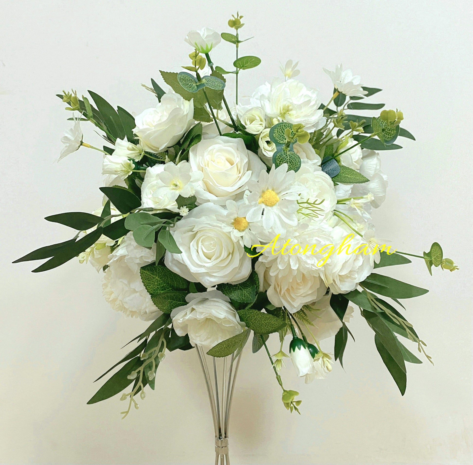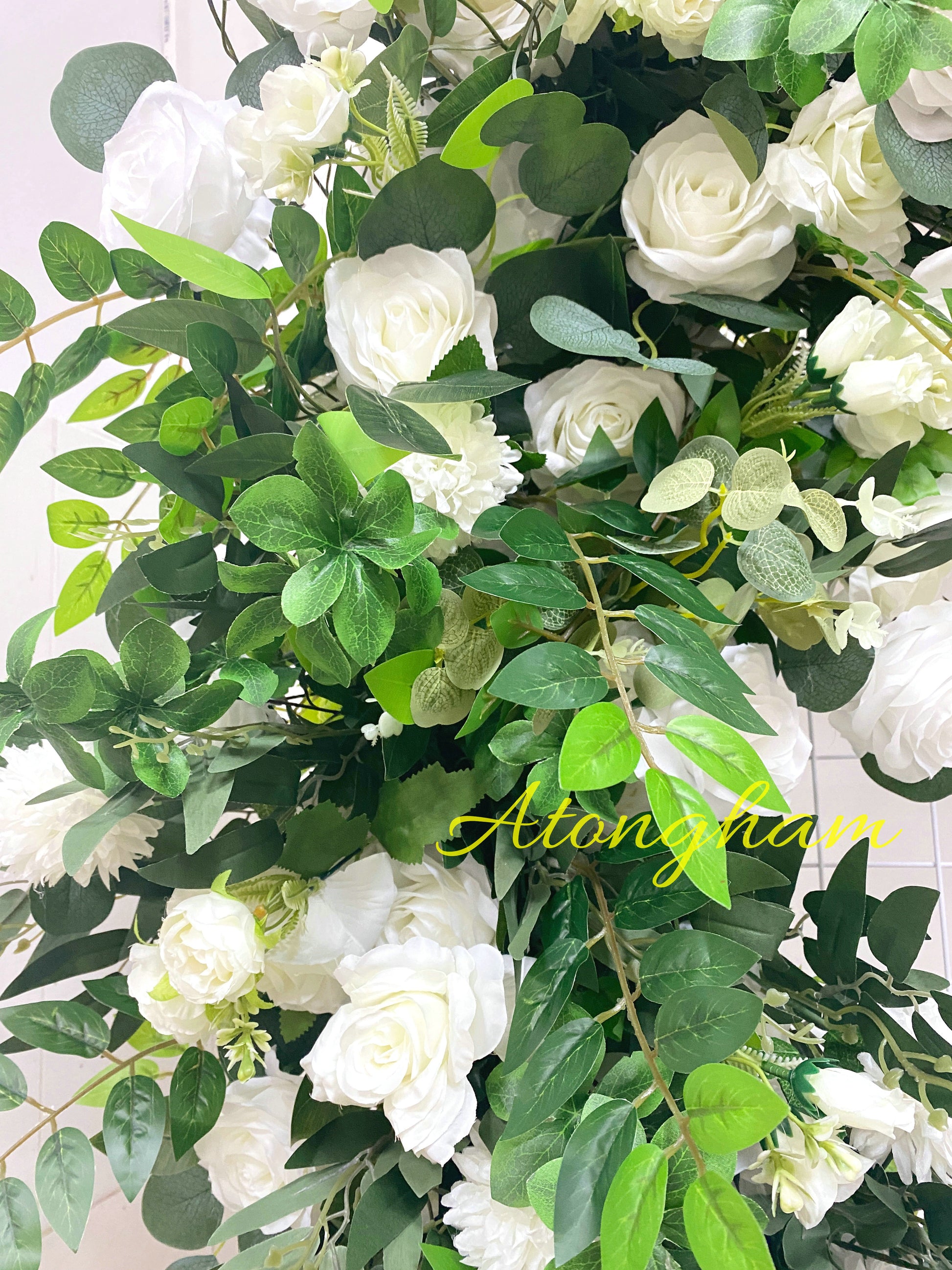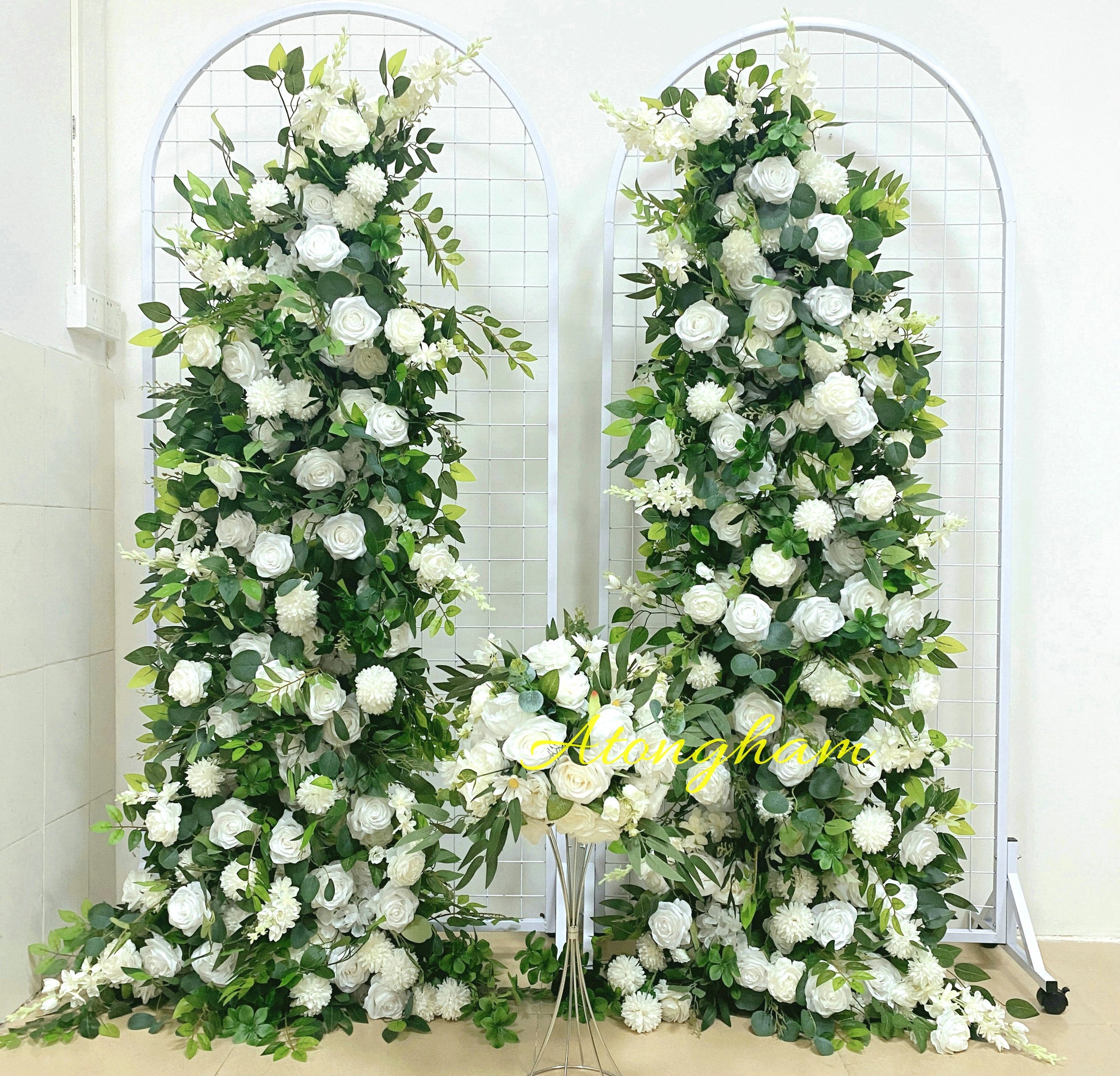 Round Green Leaves White Rose Arch Flower Wedding Engagement Ceremony Table Centerpiece